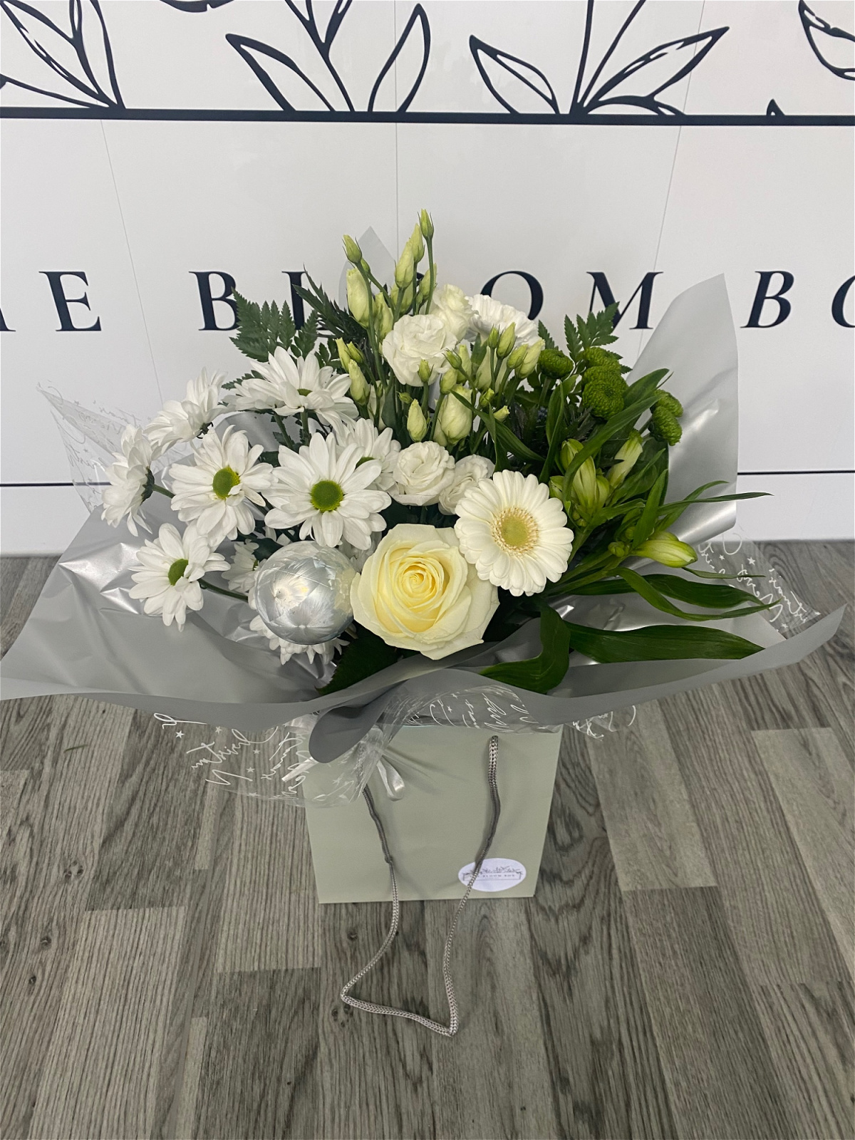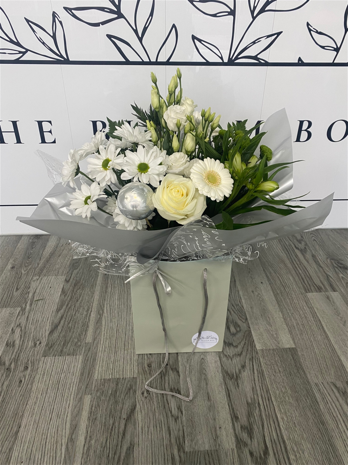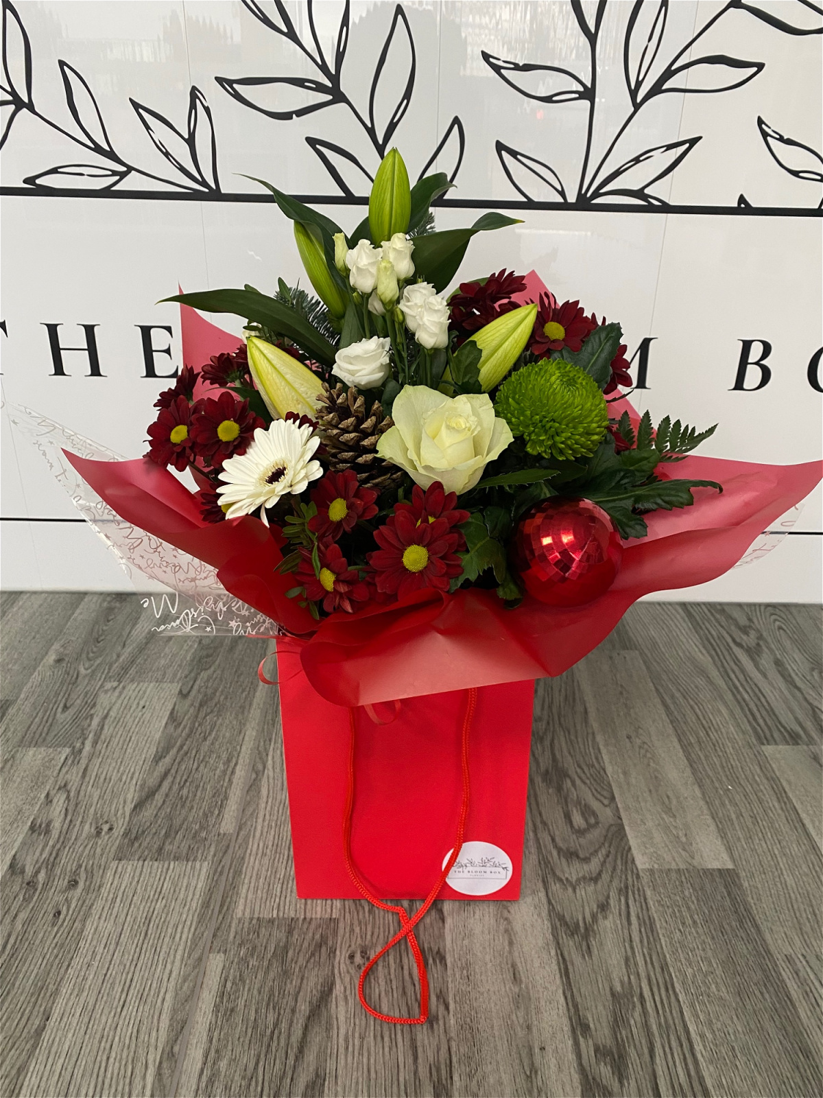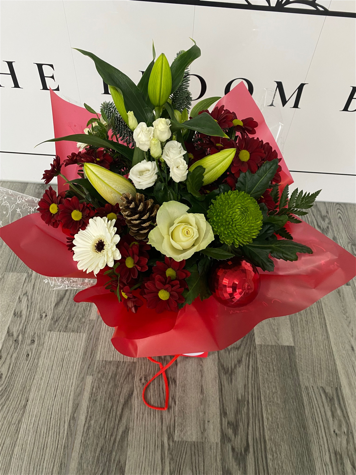 One of our talented team will choose the freshest flowers, in Christmas theme colours to create a beautiful bouquet!
