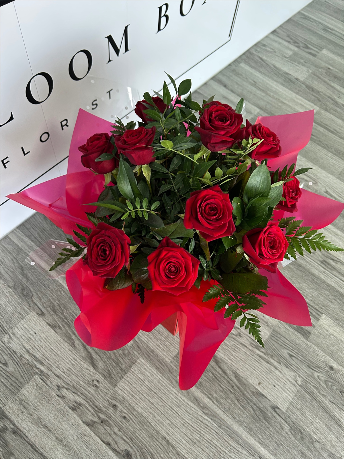 Our bouquets, filled with the absolute best quality, long stem red roses & greenery, are both modern and elegant.
